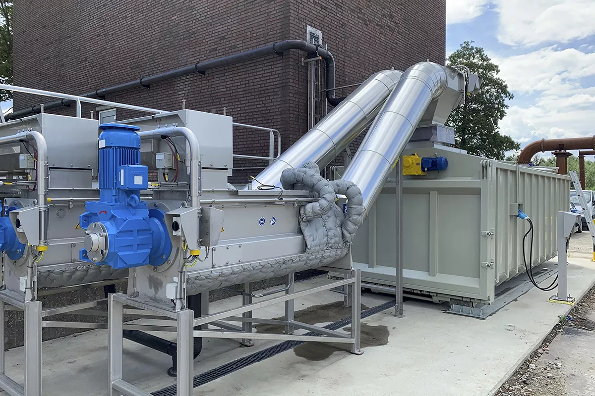 Dutch Spiral est une entreprise familiale néerlandaise connue pour ses transporteurs à vis sans arbre. La solution de conteneur pour les matières résiduelles provenant de l’épuration des eaux usées a été développée avec l’entreprise Huber et est aujourd’hui déployée dans pratiquement toutes les stations d’épuration aux Pays-Bas. Le concept repose sur deux solutions : un conteneur de déshydratation STC servant au transport des boues déshydratées sans les nuisances olfactives, et un conteneur RGC pour le transport des résidus provenant du dégrillage.